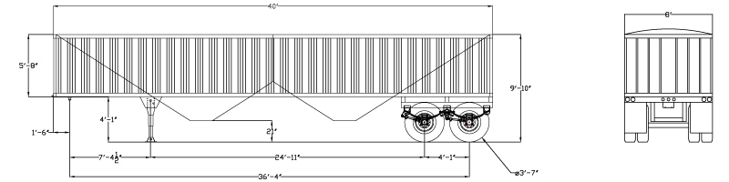 | Dimensions | 40′ Length x 96″ width x 68″ Side Height |